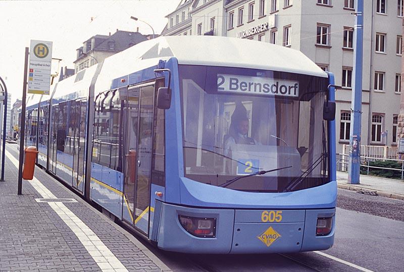 Altchemnitz, ET 901 am Abfahrsbahnsteig Ri. Stadt. Die blauen Zweirichtungswagen verkehren im Gegbensatz zu den roten der Citybahn ausschließlich auf den nach BO-Strab betriebenen Strecken