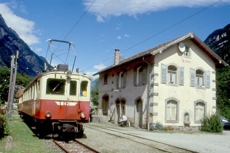 SNCF Schmalspur-Triebwagen Z601 in Chamonix-Mont-Blanc, Mai 1996. Gescanntes Farbnegativ.
