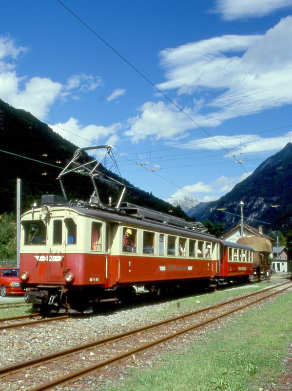 FM Extra-GmP 3206 für GRAUBÜNDEN TOURS Castione-Arbedo - Cama vom 29.08.1997 nach Ankunft in Cama mit Triebwagen BDe 4/4 491 - Kk 7027 - A² 1102.