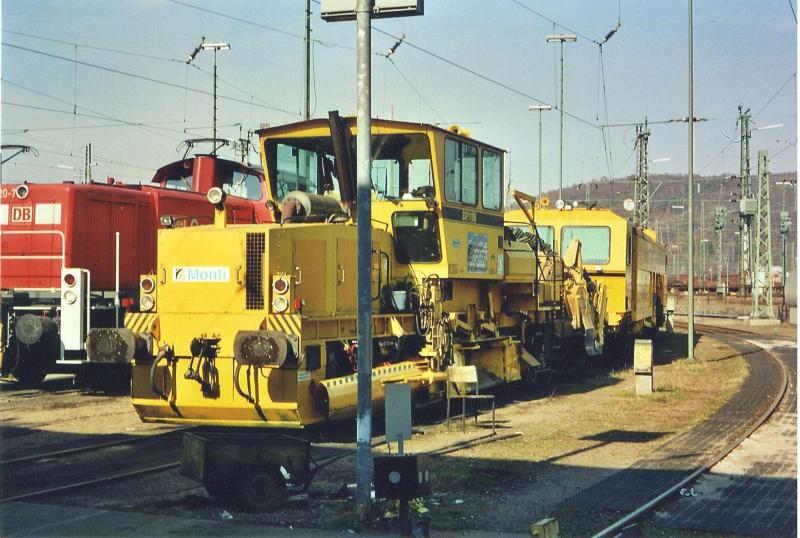 Das ist die 203 310 8 + Unimat der DB Netz Instandsetzung zwischen Gößnitz und Meerane. Bei bestem Wetter am 03.04.2005.