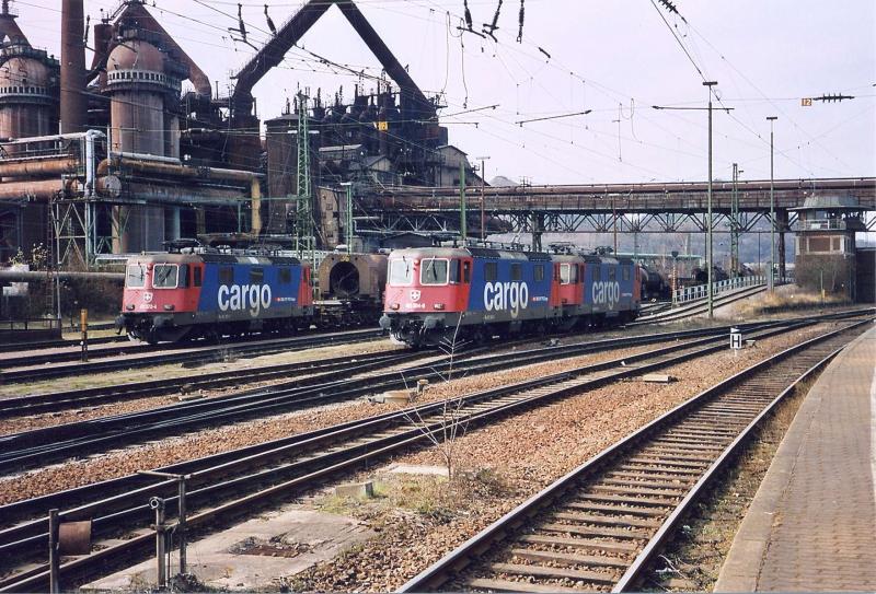 Lokwechsel der SBB Loks für die Flüssigeisenzüge in Völklingen (D).
