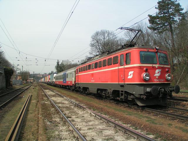Güterzug mit Öbb 1042.502-3 in Tullnerbach Pressbaum.