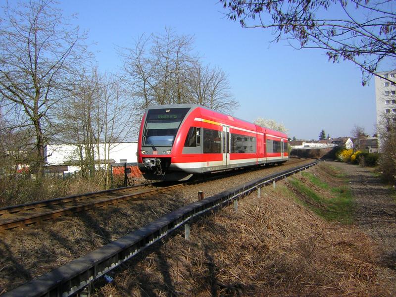 Am Wochenende der Feierlichkeiten zum 100jährigen Bestehen der Dreieichbahn von Dreieich nach Dieburg am 2. und 3. April 2005 hatte der Planzug mit GTW 2/6 646 + 946 201 Einfahrt in den Bahnhof Sprendlingen, wo er den Dampfloksonderzug kreuzte, der aus diesem Anlaß verkehrte.