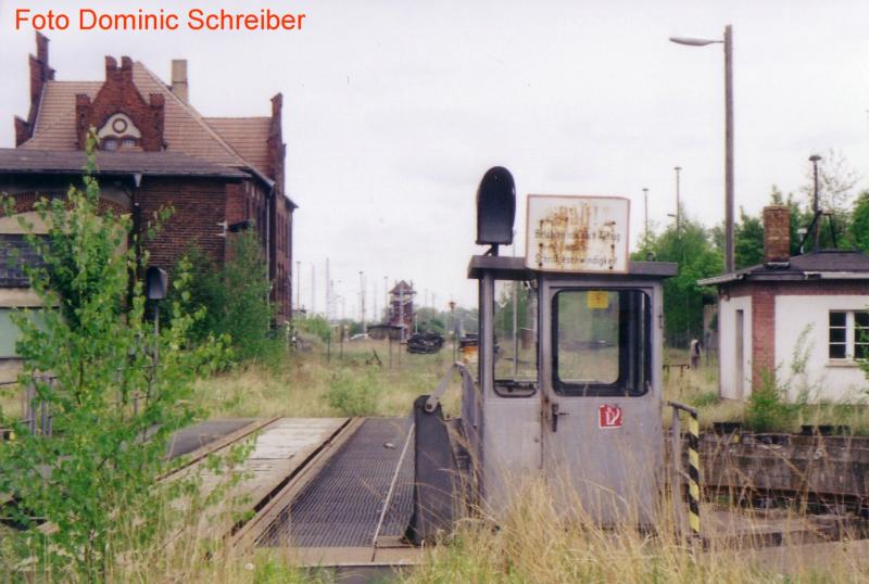 Drehscheibe 1 mit Lokschuppen im Hintergrund in Wustermark. Aufgenommen im Mai 2003.
