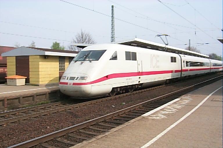 Ein ICE 1 durchfährt am 16.4.05 um 16:02 Uhr als ICE 538 (von Hannover nach Bremen) den Bahnhof "Nienburg (Weser)"