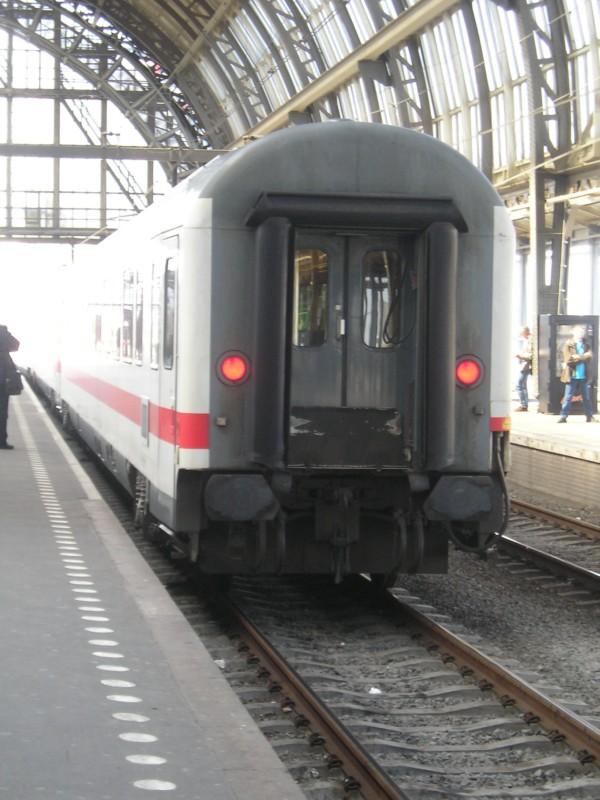 Bf Leipzig Hbf Gl 4, Umbausteuerwagen DABbuzfa am ersten Tag des S-Bahnprobebetriebes (mit Fahrgästen) nach Halle über die neue Streckenführung über Gohlis (5.12.2004). Seit Anfang April sind auch die beiden letzten Gleise 4 und5 in der westlichsten Halle außer Betrieb, in deren Lage soll der Tunnelbahnsteig gebaut werden.