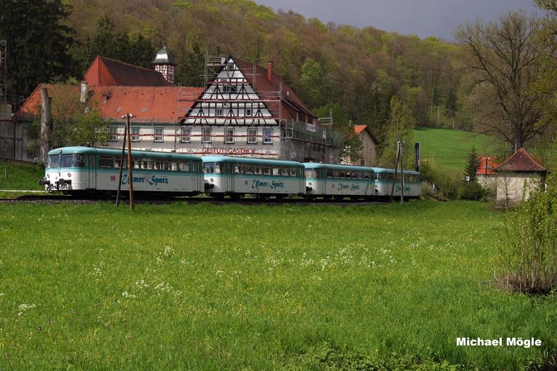 Ulmer Spatz auf der Strecke Kleinengstingen-Schelklingen kurz nach der Ausfahrt aus dem Bahnhof Kleinengstingen.