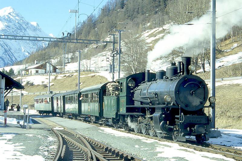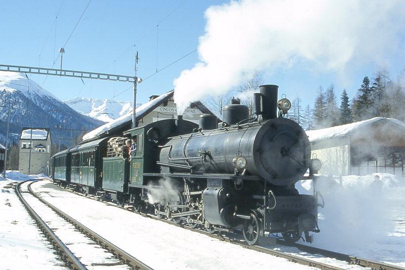 RhB DAMPFZUG für GRAUBÜNDEN TOURS 3723 von St.Moritz nach Scuol am 02.03.1997 in Cinuos-che-Brail mit Dampflok G 4/5 108 - A² 1102 - B² 2060 - D² 4052I - B 2245.
