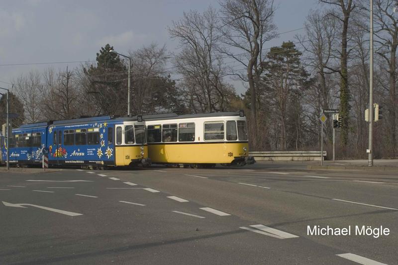 Stuttgart Straßenbahn Linie 15 02.2004 vor Haltestelle Geroksruhe