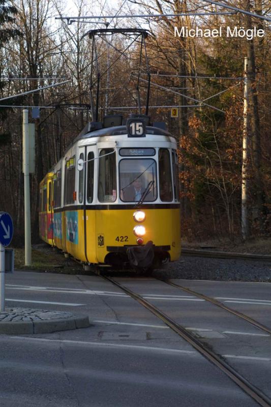 Stuttgart Straßenbahn Linie 15 02.2004 vor Wendeschleife Ruhebank