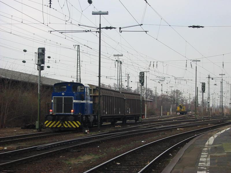 Hier sieht man eine klein blaue Rangierlok der Firma UNISPED die am 18.2.2005 in Worms rangierte. Lok fährt maximal 60km/h. Lok ist oft in Worms unterwegs.