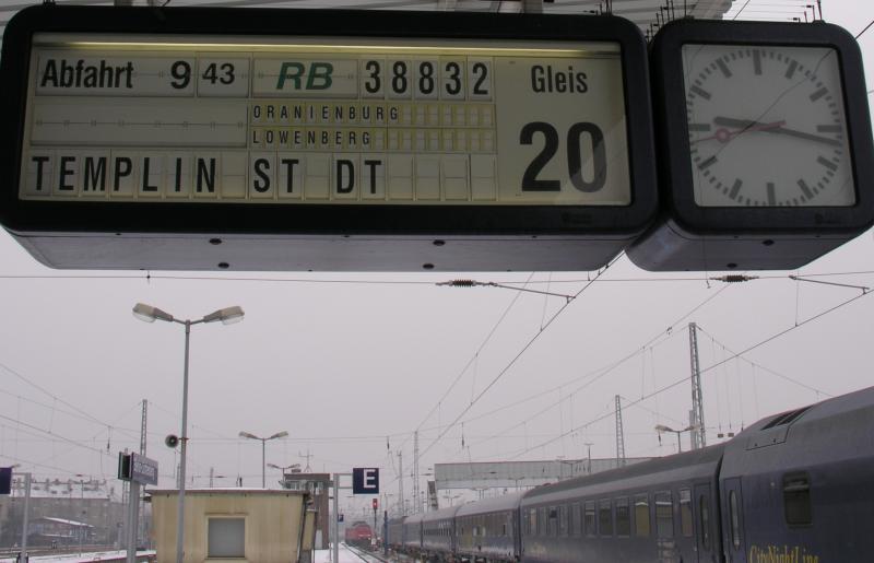 19.02.2005, Bahnhof Berlin-Lichtenberg. Zugzielanzeiger mit Fehler.