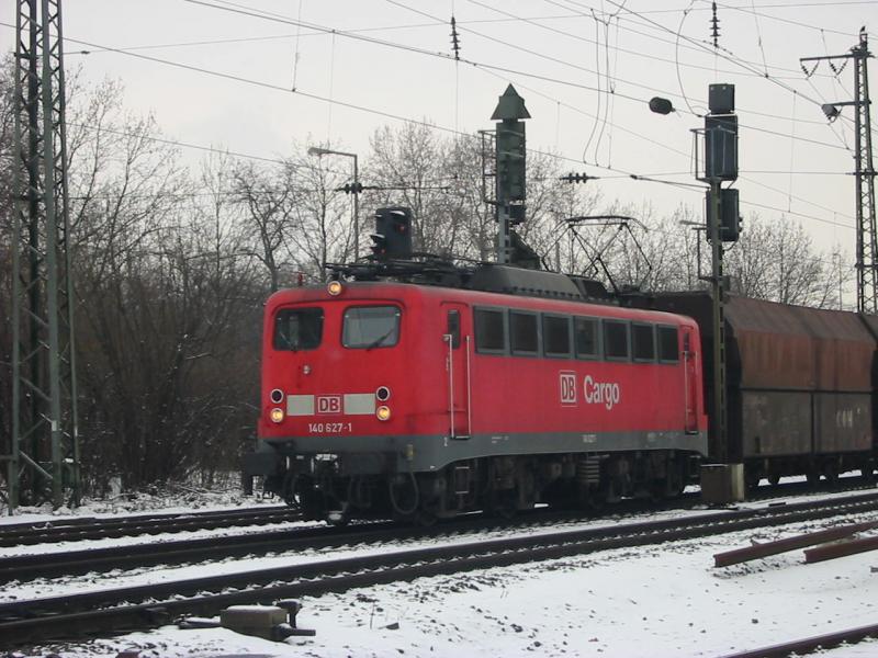 Hier sieht man die 140-627 die am 23.2.2005 einen Güterzug durch Mannheim Hbf zog.