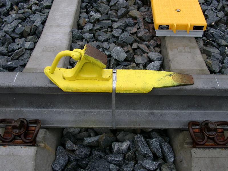 Zugziel f a l s c h anzeiger sind leider immer häufiger zu finden. Im Hintergrund im Bau der neue Kaiserbahnhof in Potsdam Park Sanssouci, früher Wildpark (05.06.2004)