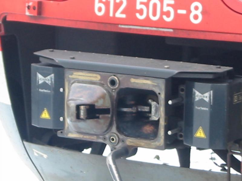 Hier sieht man die Scharfenbergkupplung eines Triebwagen der Baureihe 612.