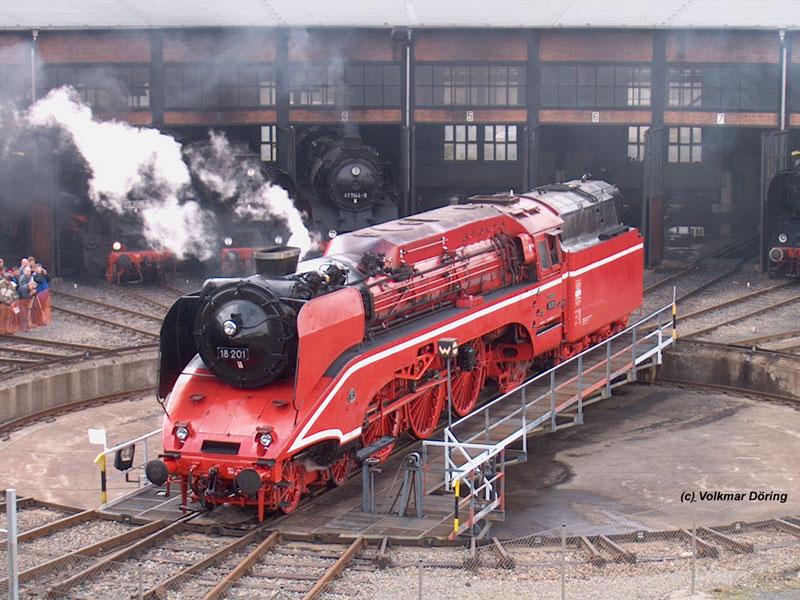 18 201, die schnellste betriebsfähige Dampflok der Welt, auf der Drehscheibe in DD-Altstadt - 22.05.2004 - Dampflokfest