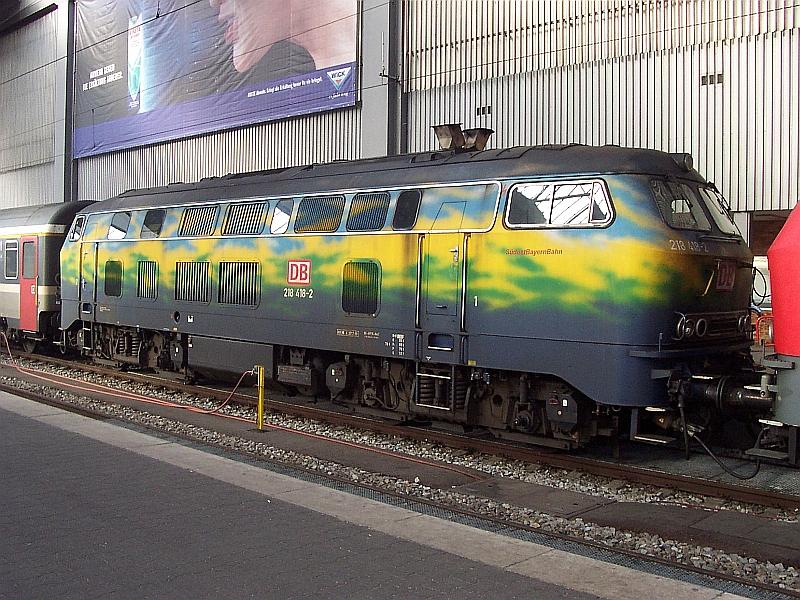 BR 218 418 Touri am 01.01.2005 als zweites Zugpferd vor einem EC aus Zürich in München angekommen.