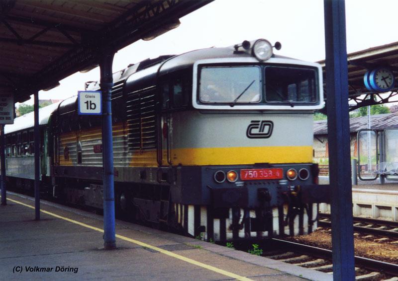 Die CD-Lok 750 358 (genannt Taucherbrille oder Brille) steht in Zittau abfahrbereit mit ihrem Os-Zug ins böhmische Reichenberg (Liberec) - 25.06.2002