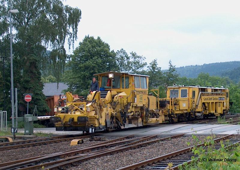 Gleisbaumaschine der Fa. Lasch GmbH Zwickau fährt in Schwarzenberg ein - 20.06.2003