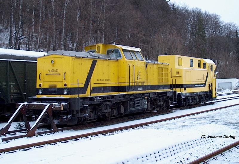 V 100.01 mit Schneepflug Bauart Meiningen in Mulda (Sachsen) - 19.01.2004