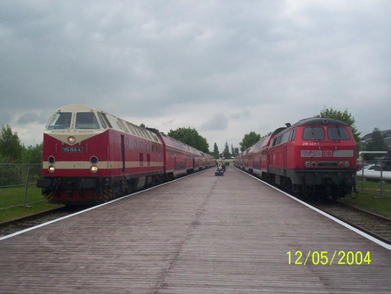 119 158 & 218 447 stehen am 12.05.2004 in Dippensee und warten das FAHRGÄSTE von der ILA kommen.