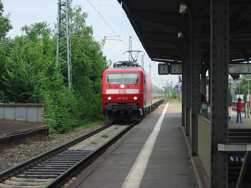 120-131 mit einem sehr kurzen IC am 2.7.2005 bei der Durchfahrt von Bensheim.
