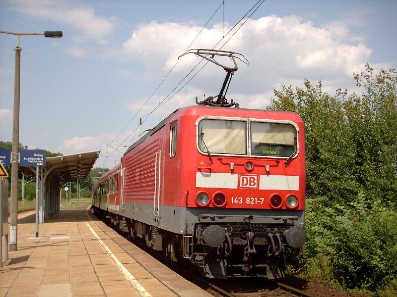 143 275-6 schiebt mit wenig Minuten Verspätung um 13:19 Uhr die Regionalbahn von Kronach nach Treuchtlingen ein. Küps, 24.05.2004.