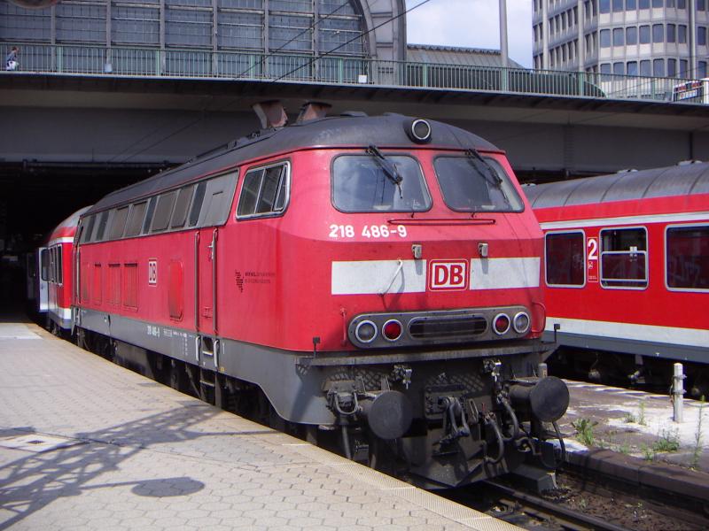 218 465-3 schiebt ihren EC in denn Hamburger HBF am 2.7.05