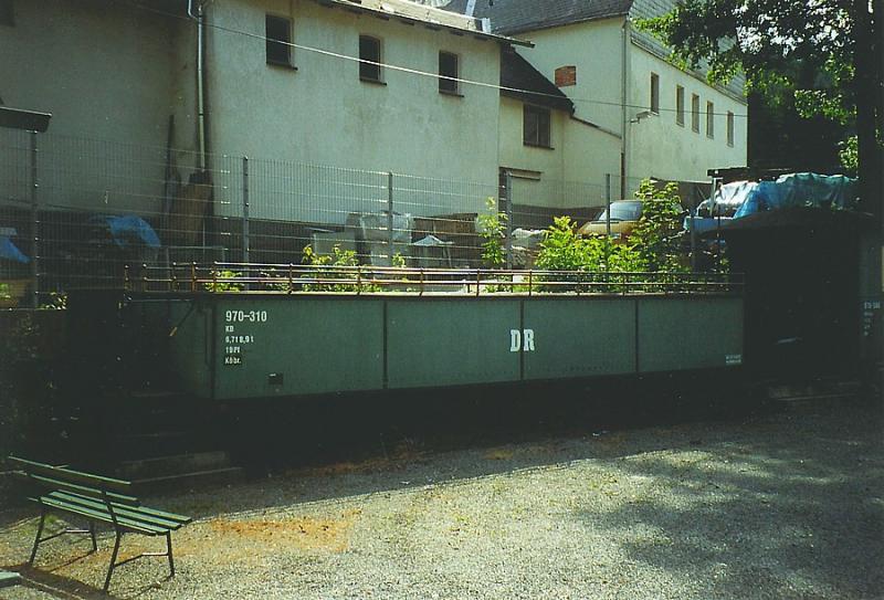 Rf6 97-07-60 im Schmalspurmuseum Rittersgrün 25.06.06. Der erste 6-achsige Rollwagen den ich live gesehen habe. Sonst kenne ich die nur mit 4 Achsen. Die waren wohl weniger entgleisungsfreudig.