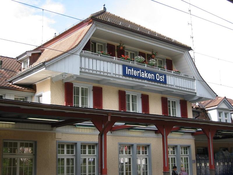Bahnhof Interlaken Ost im Juli 2003. Dies ist der größere der beiden Bahnhöfe in Interlaken. Hier treffen sich die Bahnen der BLS sowie die Schmalspurbahnen der BOB und der Brüningbahn der SBB. Sogar deutsche ICE's kann man hier antreffen, aber blöderweise habe ich damals keinen fotografiert. Ganz in der Nähe befindet sich auch der Hafen für die Schiffe, die den Brienzer See befahren.