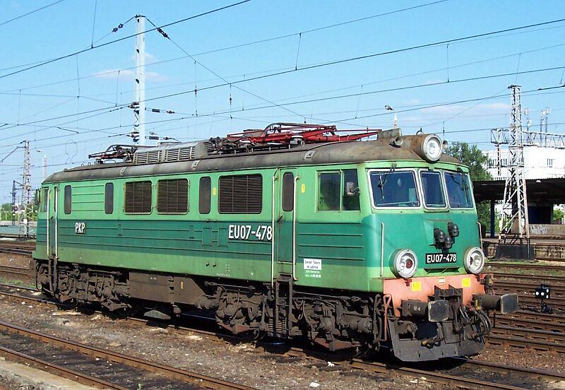 EU07-478 am 24.06.2005 in Warszawa Wschodnia (Warschau). Die EU07 ist wie unsere BR 110  Mädchen für alles , vom IC bis zum Güterzug, auch zum Rangieren.