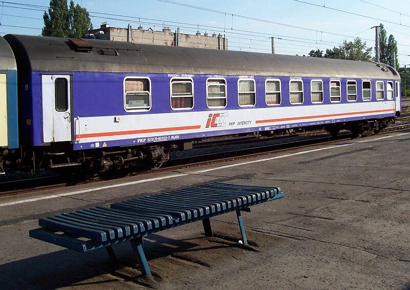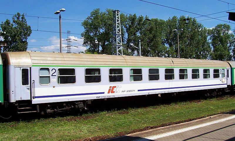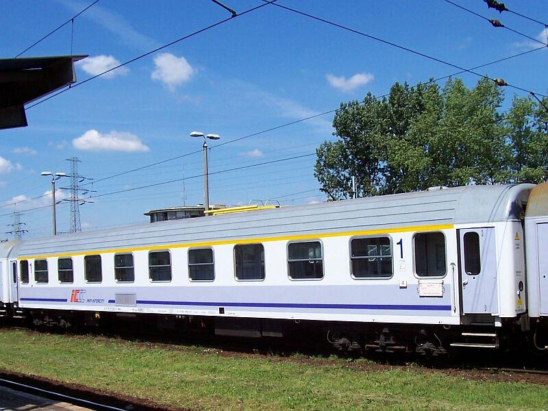 EU07-512 mit grauen Zierstreifen und IC-Zug am 24.06.2005 in Warszawa Zachodnia (Warschau).