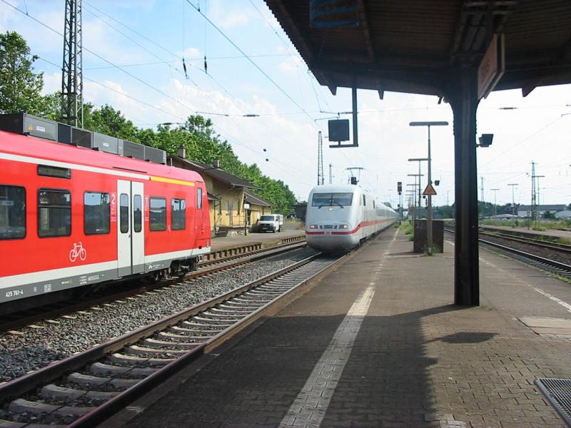 Alt und neu links 628.3 rechts ICE T in Weinheim(Bergstr)am 1.7.2005