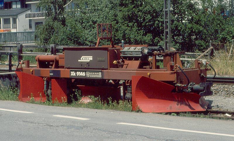 RhB Dienztzug 8652 von Chur Sand nach Chur am 07.06.1997 in Chur Sand mit Triebwagen ABDe 4/4 483II. Hinweis: Dieser Triebwagen wurde für einen schweren Zug als Vorspann nach Arosa benötigt und aus dem Depot Sand geholt.