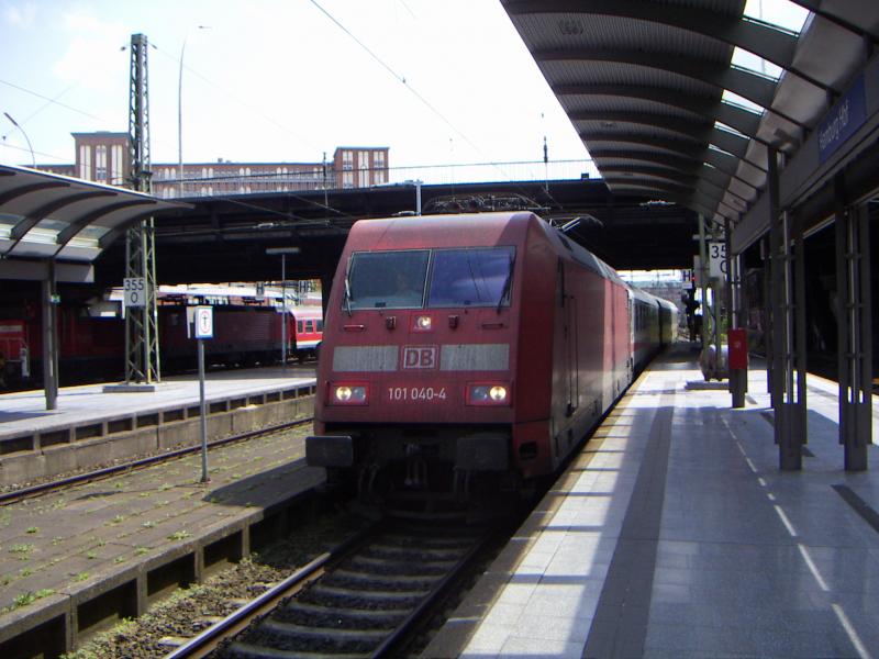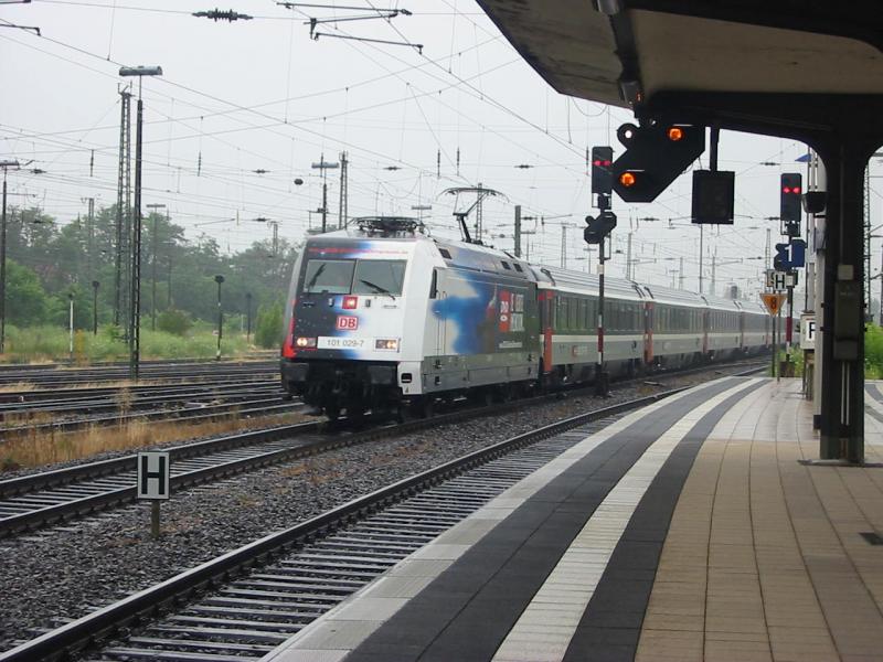 101-029 bei strömendem Regen am 6.7.2005 bei der Durchfahrt von Worms Hbf.