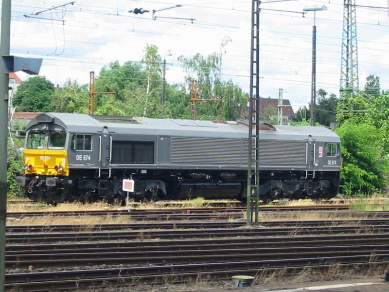 Class 66 DE 674 der HGK ist am 5.7.2005 in Worms Hbf abgestellt.