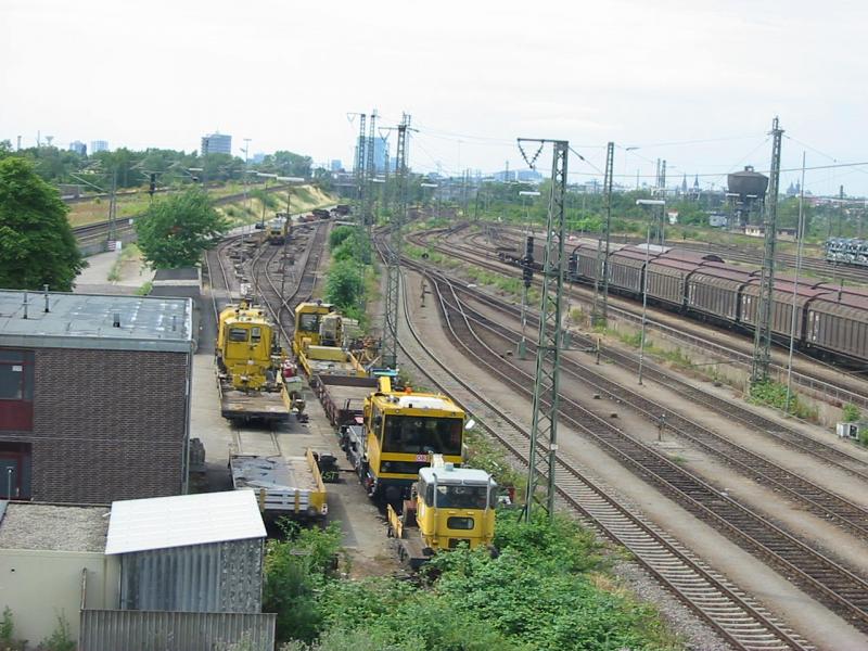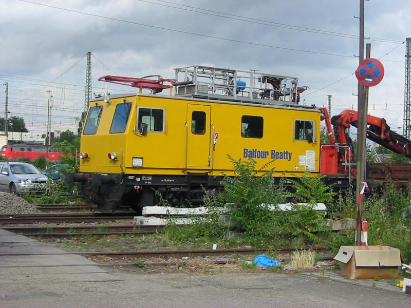 Turmtriebwagen vom Typ Balfour Beatty stand am 6.7.2005 auf dem Park and Ride Parkplatz von Mannheim Hbf, wie man sieht war auf legalem Gelände.