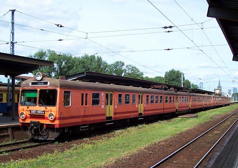 EN57-1713 der PKP in orange/rot am 24.06.2005 in Warszawa Wschodnia (Warschau)
