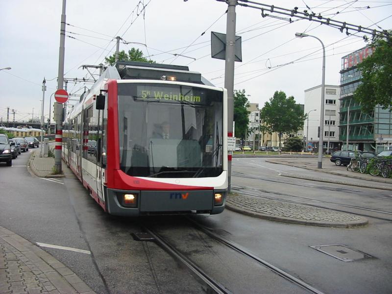 Straßenbahn der OEG am 7.7.2005 auf dem Weg nach Weinheim (Bergstraße), hier in Mannheim Hbf.