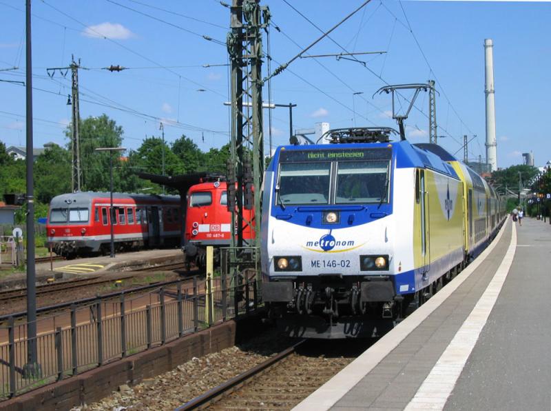 146-02 ist mit dem Metronom ME 82113 aus Hamburg angekommen in Uelzen - 11.07.2005