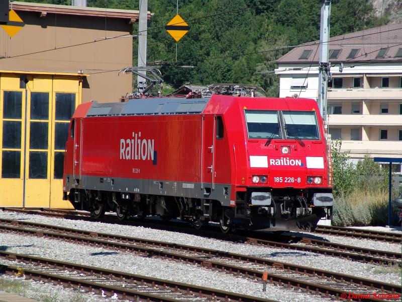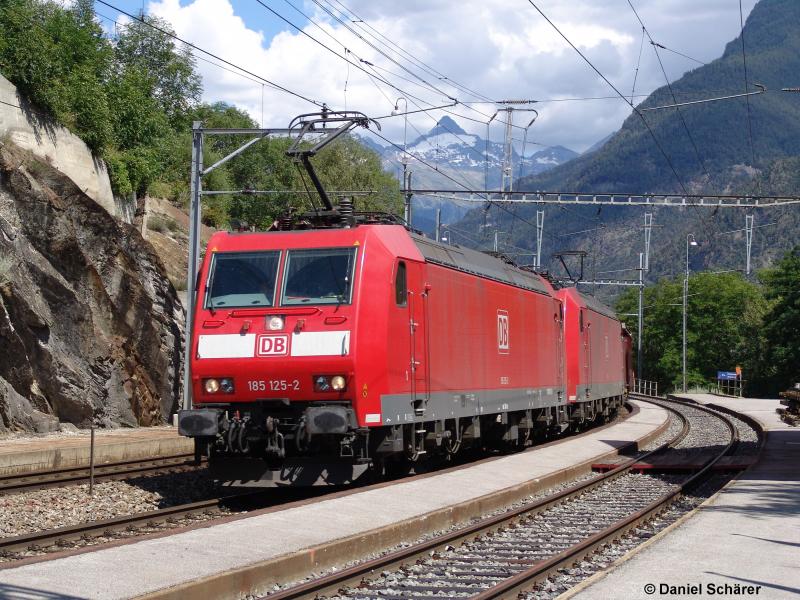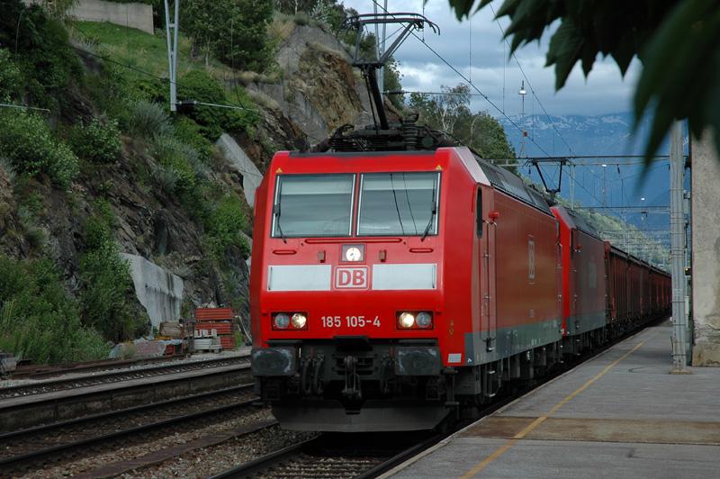 Am 12.7.05 waren die DB Br 185 226-8 und Br 185 227-6 für Testfahrten an der BLS Südrampe anzutreffen (Hier kurz vor Lalden).