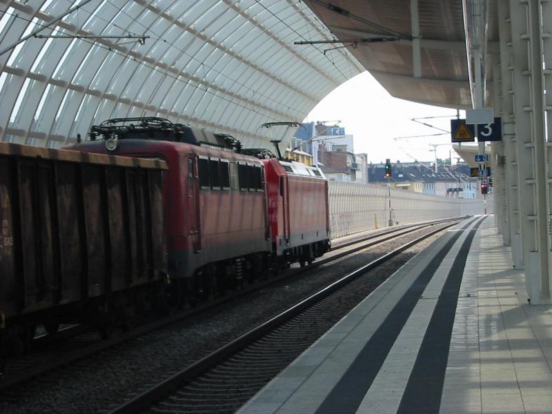 Br 110 434 mit RB nach Mannheim am haken ist ausnamsweise auf gleis 4 weil er einen IC überholen lassen musste am 15.7.2005
