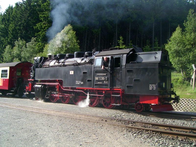 Mit neuen Vorräten versorgt wartet 99 7235-7 auf den Gegenzug vom Brocken im Bhf Drei-Annen-Hohne.