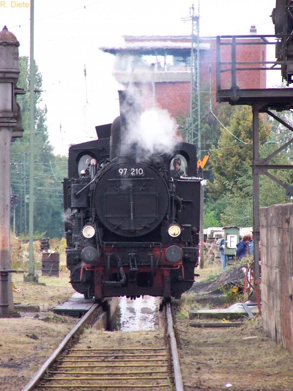 Mittlerweile leider nicht mehr betriebsfähig, stand die 1893 gebaute österreichische Zahnradlok 97 210 bis Juni diesen Jahres noch unter Dampf. Das Foto stammt vom Dampflokfest des Eisenbahnmuseum Darmstadt-Kranichstein im September 2004. Führerstandsmitfahrten auf dem BW-Gelände standen gerade auf dem Programm.