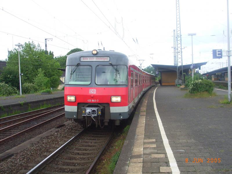 420 363 während einem kurzem Aufenthalt in Wanne-Eickel, kurz vor der Weiterfahrt Richtung Düsseldorf Abstellbahnhof