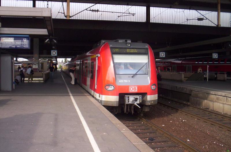 423 753(253) auf der S11 nach Bergisch Gladbach steht bei Lokführerwechsel in Düsseldorf Hbf. 29.05.2005