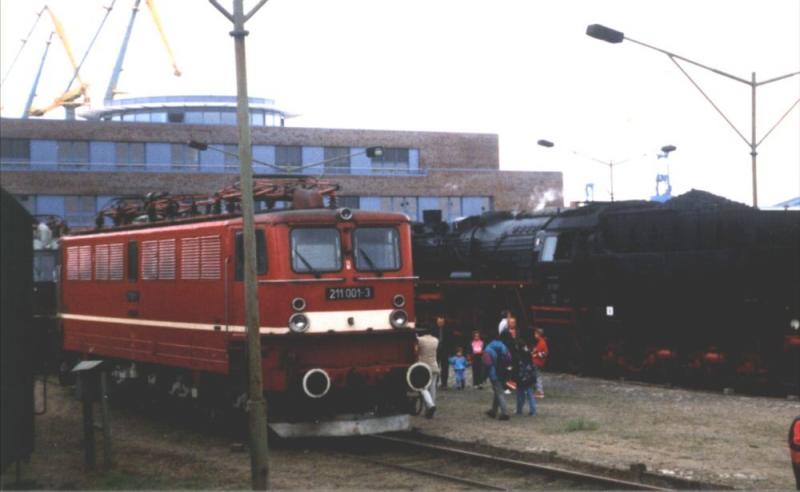 211 001-3 im Juli 1998 auf einer Lokausstellung in Wismar.