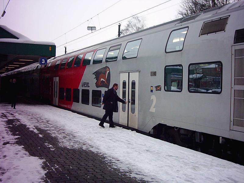 Links:  der RE nach Minden (Steuerwagen der Bauart BDnrzf)