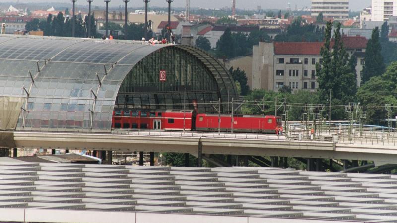 Der neue Hauptbahnhof: Berlin Lehrter Bhf, von der Reichstagskuppel aus gesehen am 8. Juni 2004