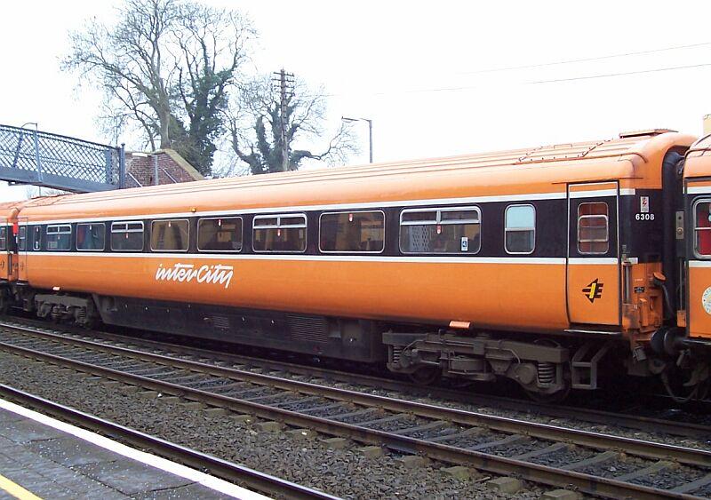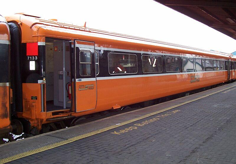 Generatorwagen mit Gepäckabteil an einen InterCity am 14.02.2005 im Bahnhof Dublin-Connolly. Dieser Wagen hat an jeden Wagenende einen Generator und in der Mitte das Gepäckabteil. Wieso die InterCity, die von diesel-elektrischen Loks gezogen werden, einen Generatorwagen brauchen, ist mir unbekannt. Ich habe nur einen InterCity ohne gesehen.